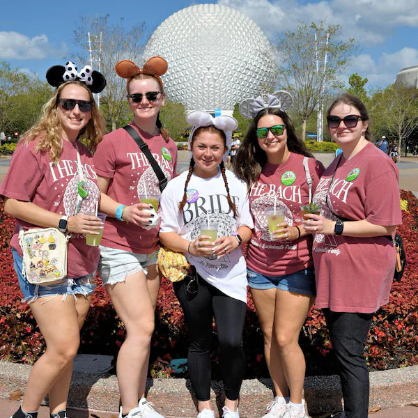 "These shirts were perfect for my friend’s Epcot bachelorette party. This design was great for a keepsake because it’s not as “cheesy” as a lot of other designs I’ve seen, and was also friendly for a couple “bridesmen” who were invited to the party as well. I feel like I could wear this shirt again without it screaming that it was for a bachelorette party at first glance, and it’s classy."